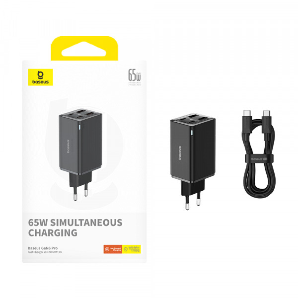 Baseus GaN6 Pro Fast 2C+2U 65W + Type-C to Type-C 100W 1m Black (P10162701113-00)