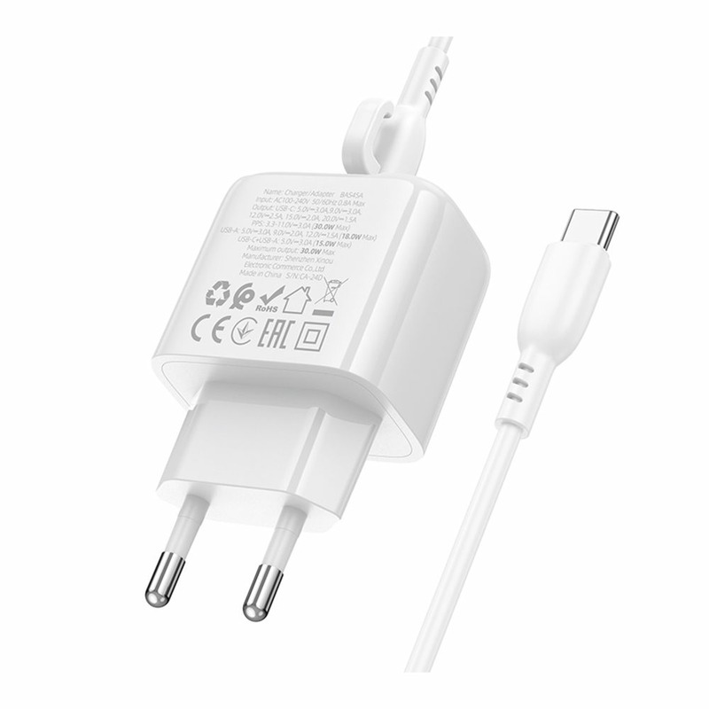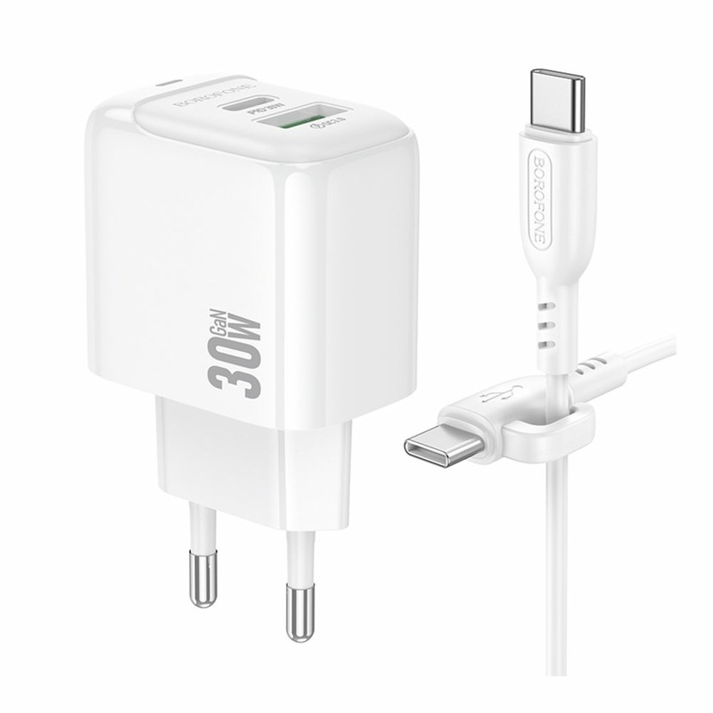 Borofone BAS45A 1USB-C/1USB PD/QC 30W + Type-C to Lightning Cable White