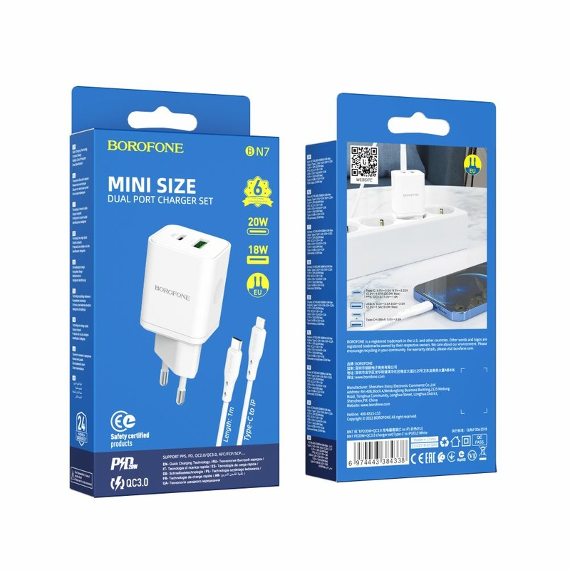 Borofone BN7 PD20W+QC3.0 + Type-C To Lightning Cable White
