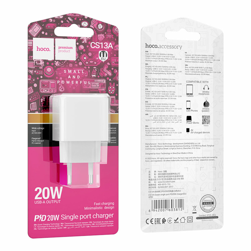 Hoco CS13A Ocean 1USB-C PD20W White