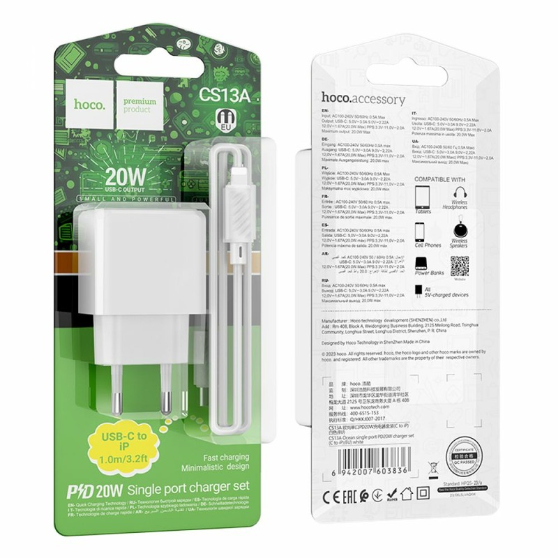 Hoco CS13A Ocean PD20W + Type-C to Lightning Cable White