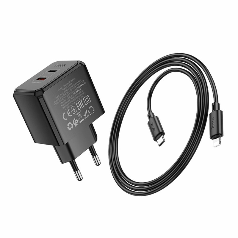 Hoco CS16A 1USB-C/1IP PD/QC 20W + Type-C to Lightning Black