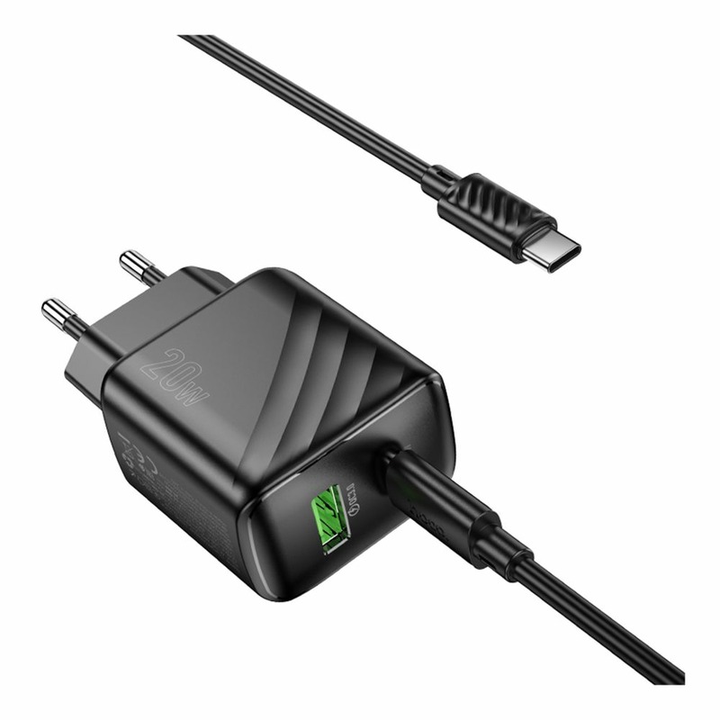 Hoco CS25A 1USB-C/1USB PD/QC 20W + Type-C to Type-C Black