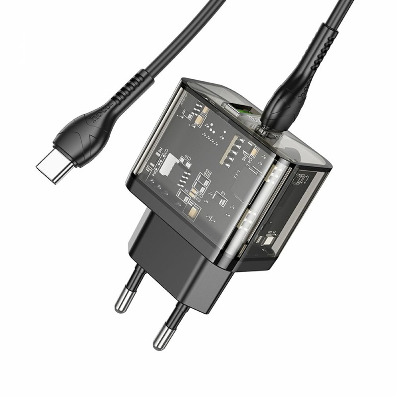 Hoco N34 Dazzling PD20W+QC3.0 + Type-C to Type-C Cable Transparent Black