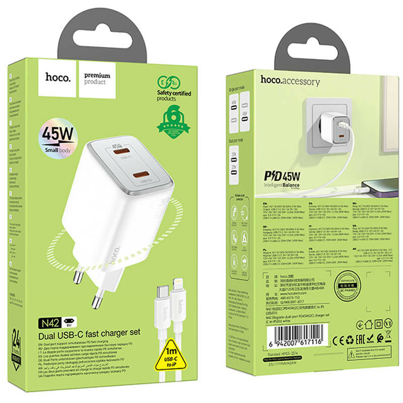 Hoco N42 Elogiado 2USB-C 45W + Type-C to Lightning White
