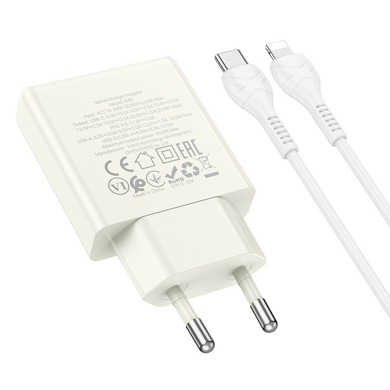 Hoco N45 Biscuit PD30W+QC3.0 + Type-C to Lightning Moonlight White
