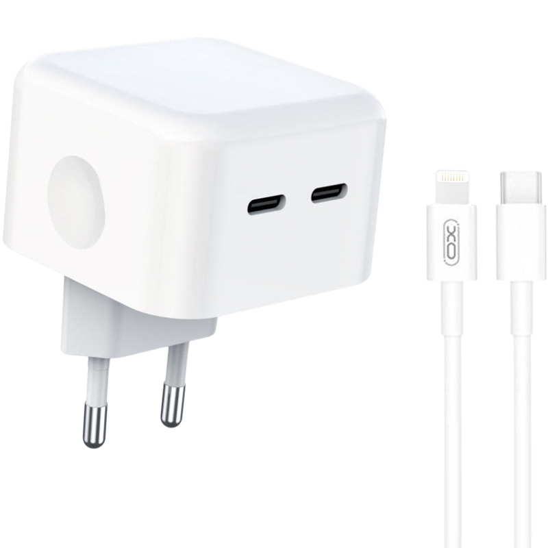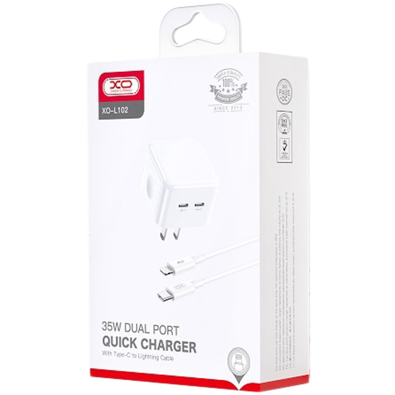 XO L102 2USB-C 35W PD + Type-C to Lightning Cable White